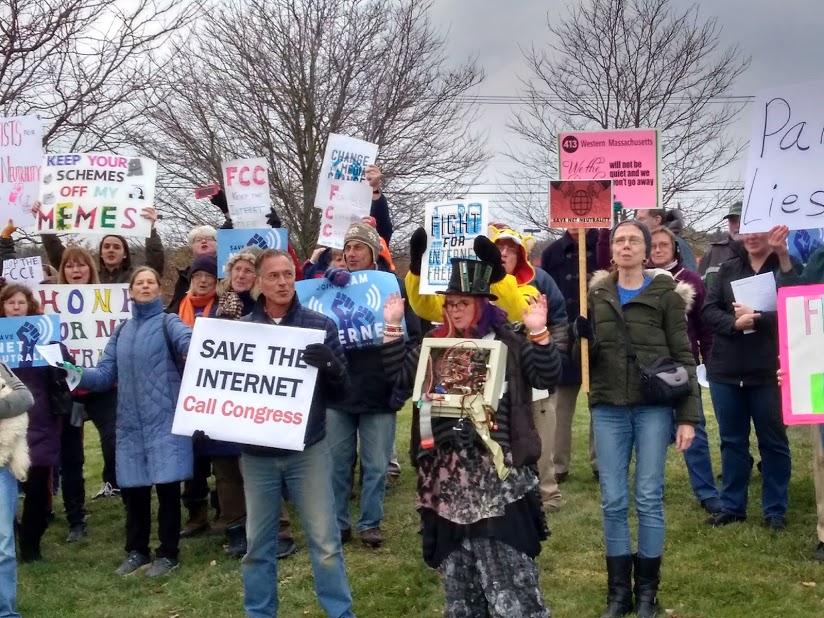 “Net Neutrality is Free Speech!” we shout. “Hey, hey. Ho, ho. Ajit Pai has got to go!”