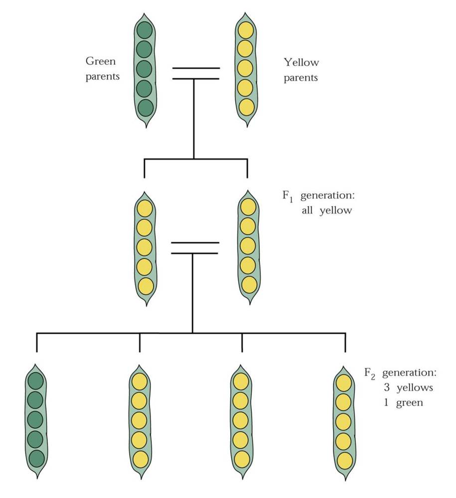 In 1854, when Mendel started looking at how hereditary traits get transmitted in plant hybrids, the prevailing beliefs were: 1) the traits of all species were merely a diluted combo of the parents’ traits, and 2) any hybrid would return to its original form over generations, ergo a hybrid could not result in something truly new. What experiments there had been to bolster these beliefs were dodgy by modern scientific standards. Scant number of trial subjects. Short trial durations. Mendel’s work, by contrast, went on for eight years, involved tens of thousands of individual plants, and mountains of meticulous data. His experiments showed that the inheritance of certain traits in pea plants follows particular patterns.