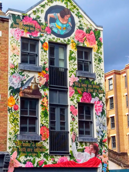 A house someone painted to celebrate the words and scenes of Romeo and Juliet.