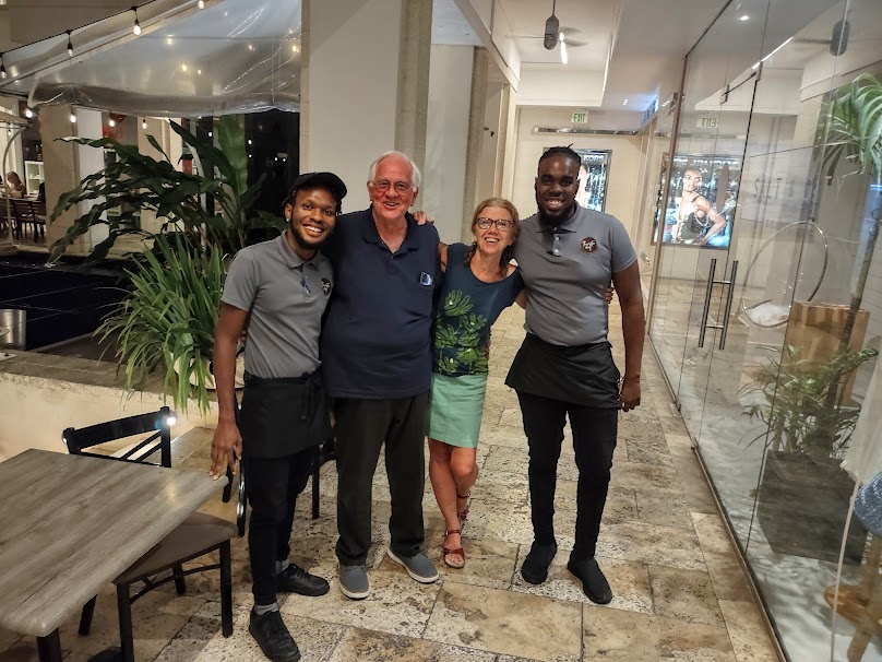 You don’t just “take a cab” in Barbados. You converse with the driver, swap stories about family, the tastiest eateries, local politics. At The Boatyard in Bridgetown—our favorite beach!—you don’t just pay for the day’s pass (umbrella, chairs, a food and drink allowance), you talk to everyone on the staff. Trade jokes with R., ask T. how his plans for opening a coffee shop are going, chat with N. about the work he does teaching magic tricks to kids.