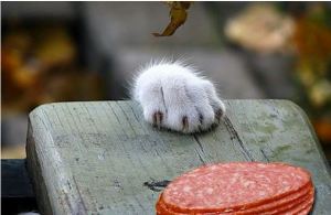 show his displeasure, once peeing all over a box of albums while giving me the angry eye for not sharing my pizza.